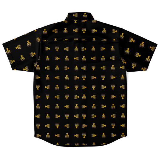 Hebrew Israelite Menorah Pattern Short Sleeve Poplin Polo Black