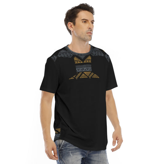Black Gold White Tribal All-Over Print Men's Short Sleeve Rounded Hem T-shirt