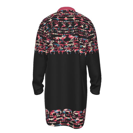Hebrew Israelite Men's Tribal Animal Fusia All-Over Print Men's Stand-up Collar Long Shirt