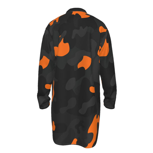 Orange Camo All-Over Print Men's Stand-up Collar Long Shirt
