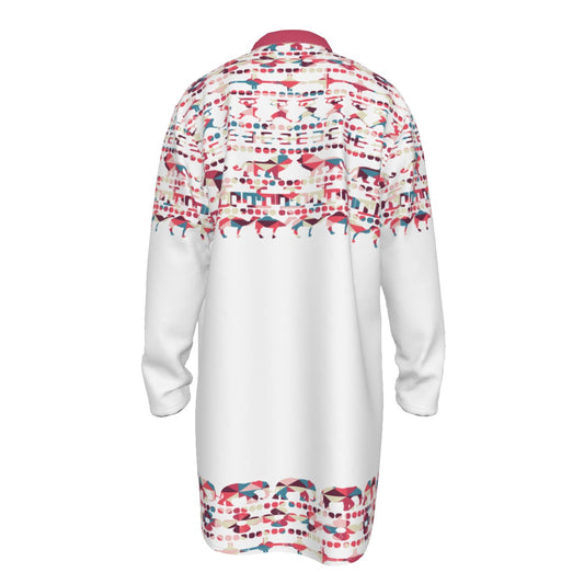 Hebrew Israelite Men's Tribal Animal Fusia White All-Over Print Men's Stand-up Collar Long Shirt
