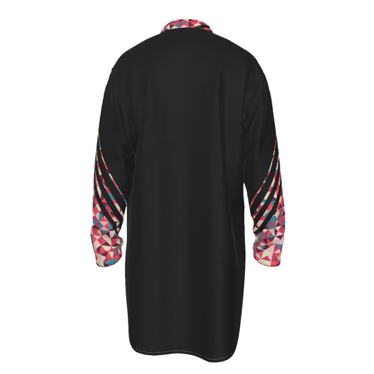 Geometric Black Passion Fruit All-Over Print Men's Stand-up Collar Long Shirt