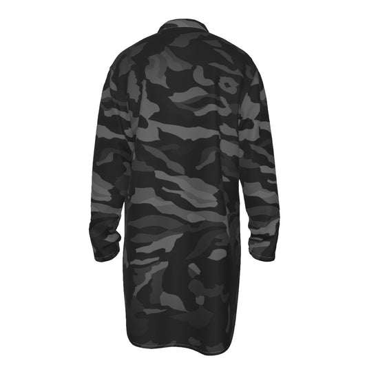 Black Camo All-Over Print Men's Stand-up Collar Long Shirt