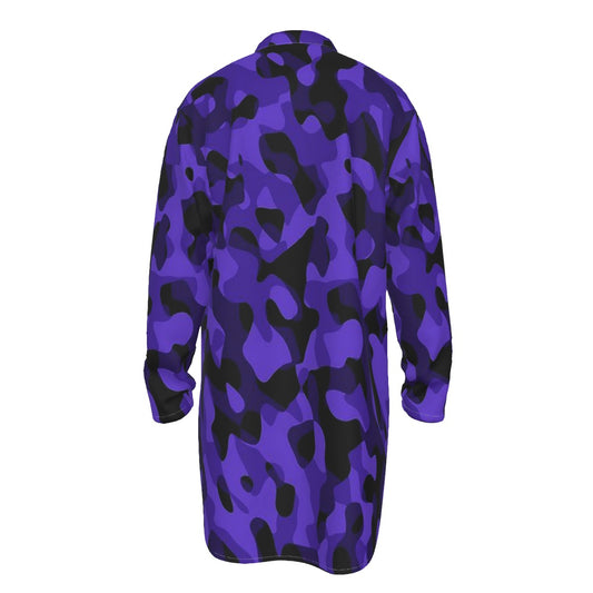 Purple Camo All-Over Print Men's Stand-up Collar Long Shirt