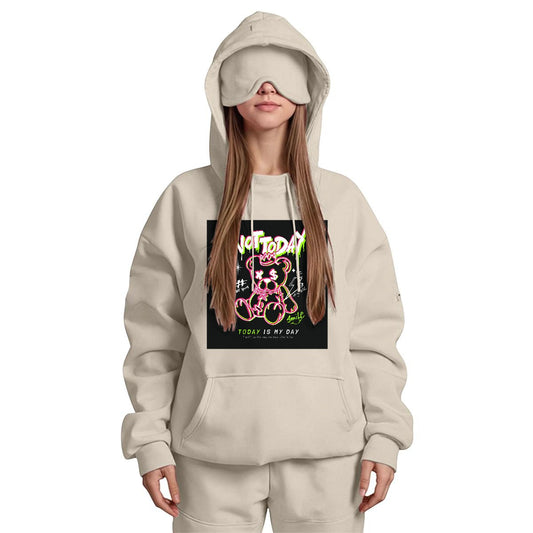 Women's Travel Nap Hoodie with Built-in Eye Mask|DTF