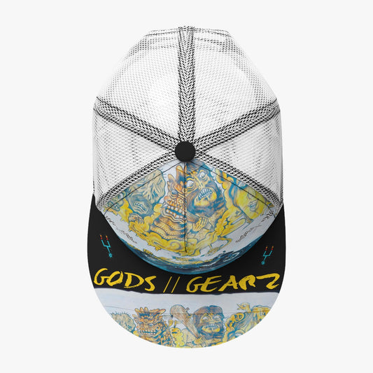Goth All-Over Print Black Buckle Flat-brimmed Mesh Cap With Box
