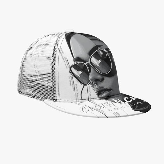 All-Over Print Black Buckle Flat-brimmed Mesh Cap With Box