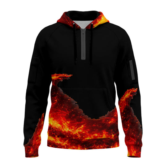 Anime Rengoku All-Over Print Men’s Fleece Half-Zip Hoodie With Arm Pockets
