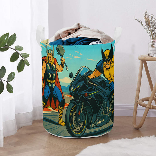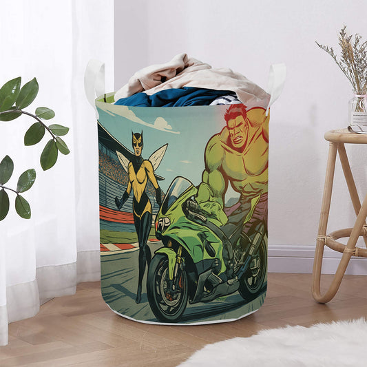 Comic Hulkster and Yellow Jacket Retro Round Laundry Basket