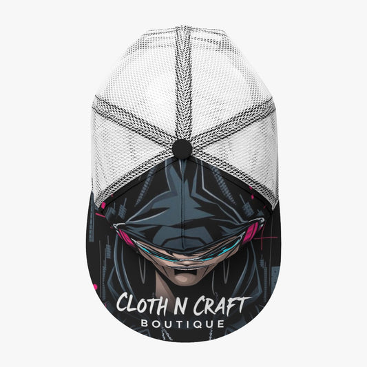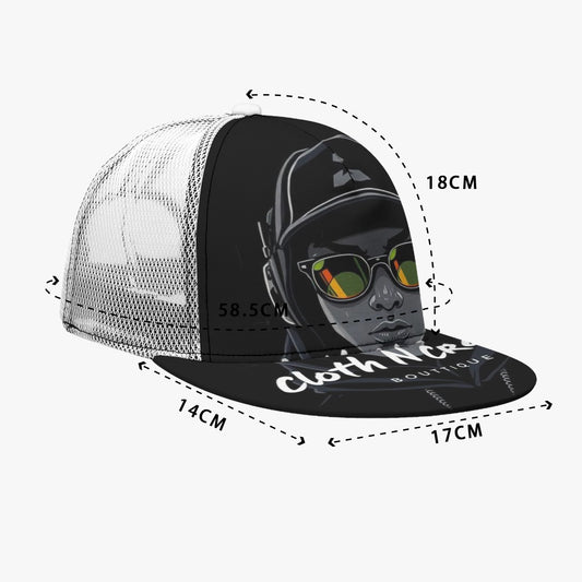 Goth All-Over Print Black Buckle Flat-brimmed Mesh Cap With Box