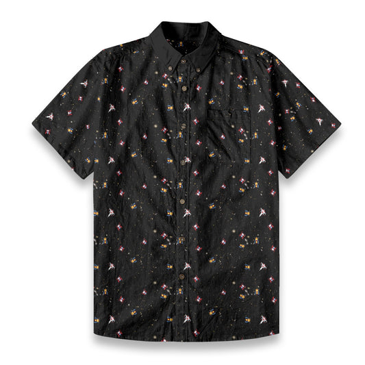 Galactic 8-Bit Print Men's Breathable Bamboo Cotton Shirt