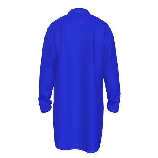 Blue All-Over Print Men's Stand-up Collar Long Shirt