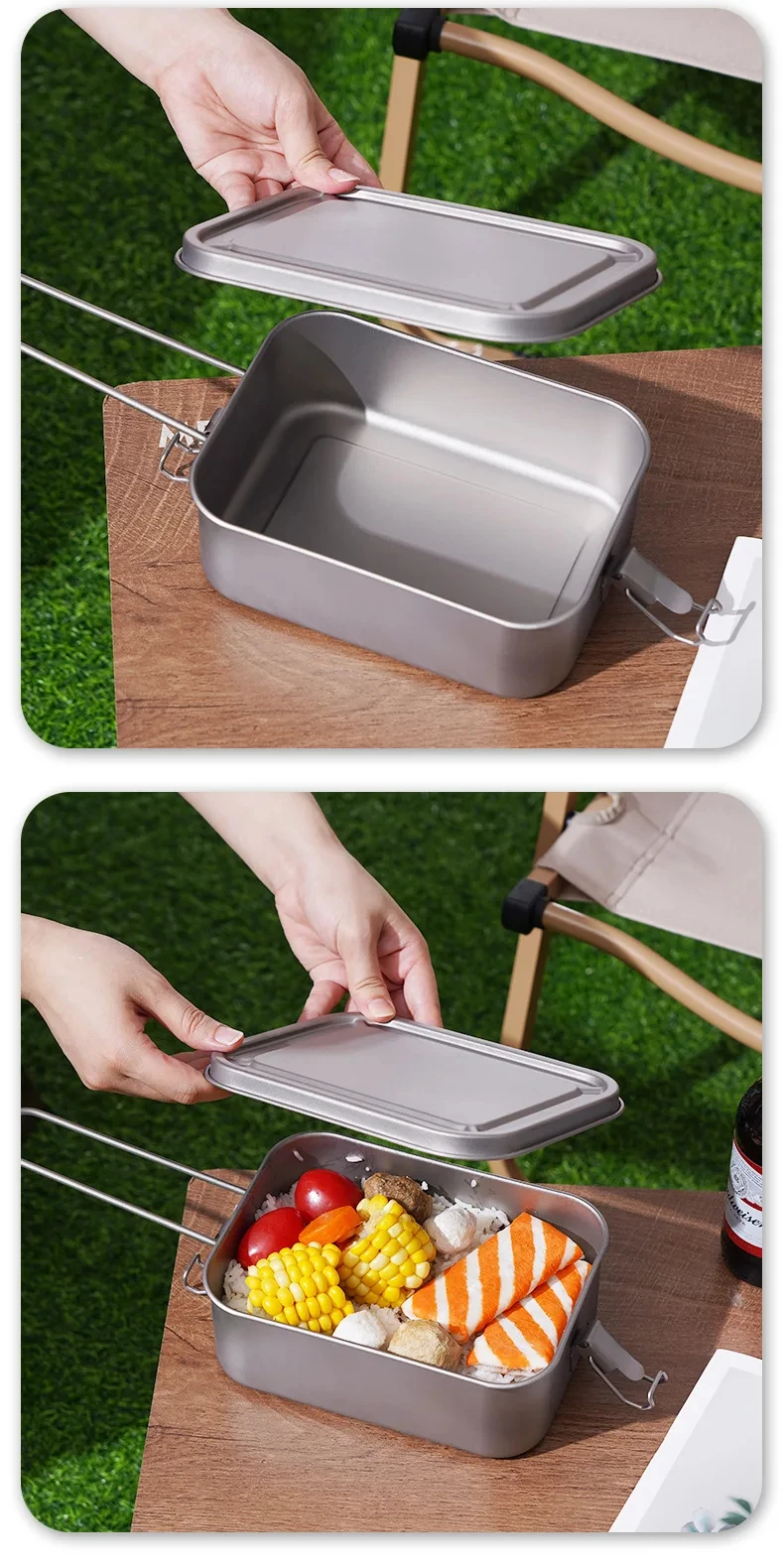 NOMAD OUTDOOR SUPPLY-1200ml Large Size Pure Titanium Outdoor Lunch Box Portable With Handle for Picnic Hiking Camping Food Box
