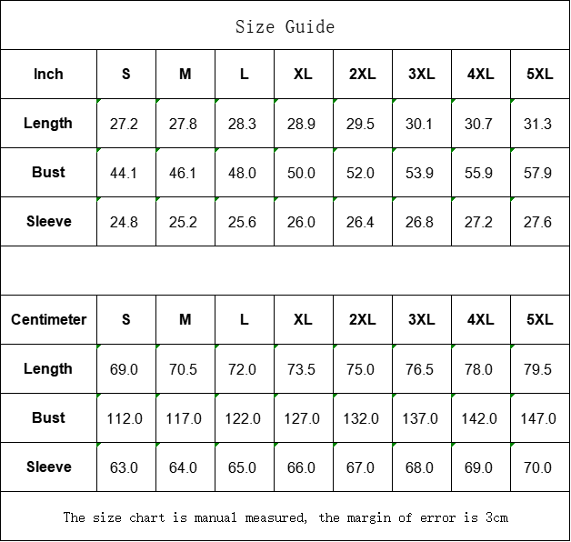 | Centimeter | S | M | L | XL | 2XL | 3XL | 4XL | 5XL |