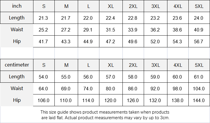 | centimeter | S | M | L | XL | 2XL | 3XL | 4XL | 5XL |