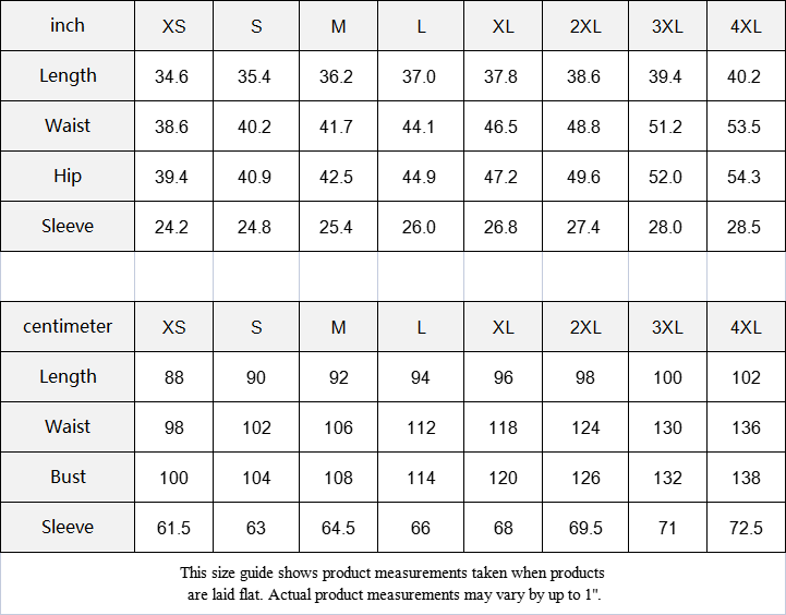 | Sleeve | 61.5 | 63 | 64.5 | 66 | 68 | 69.5 | 71 | 72.5 |