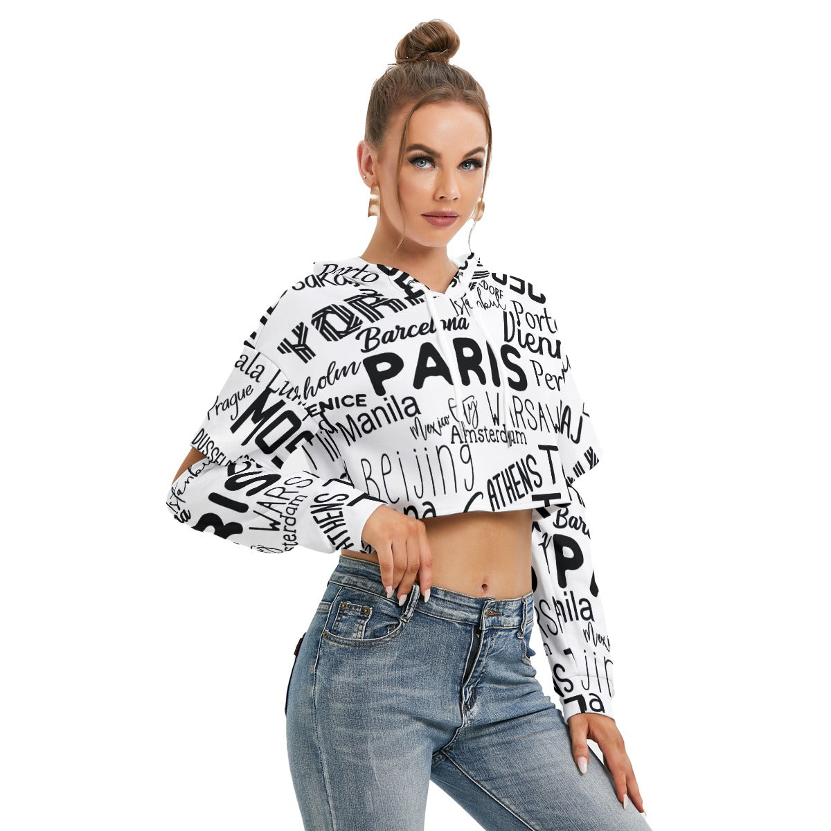 Paris Graffiti All-Over Print Women's Heavy Fleece Hoodie With Hollow Out Sleeve