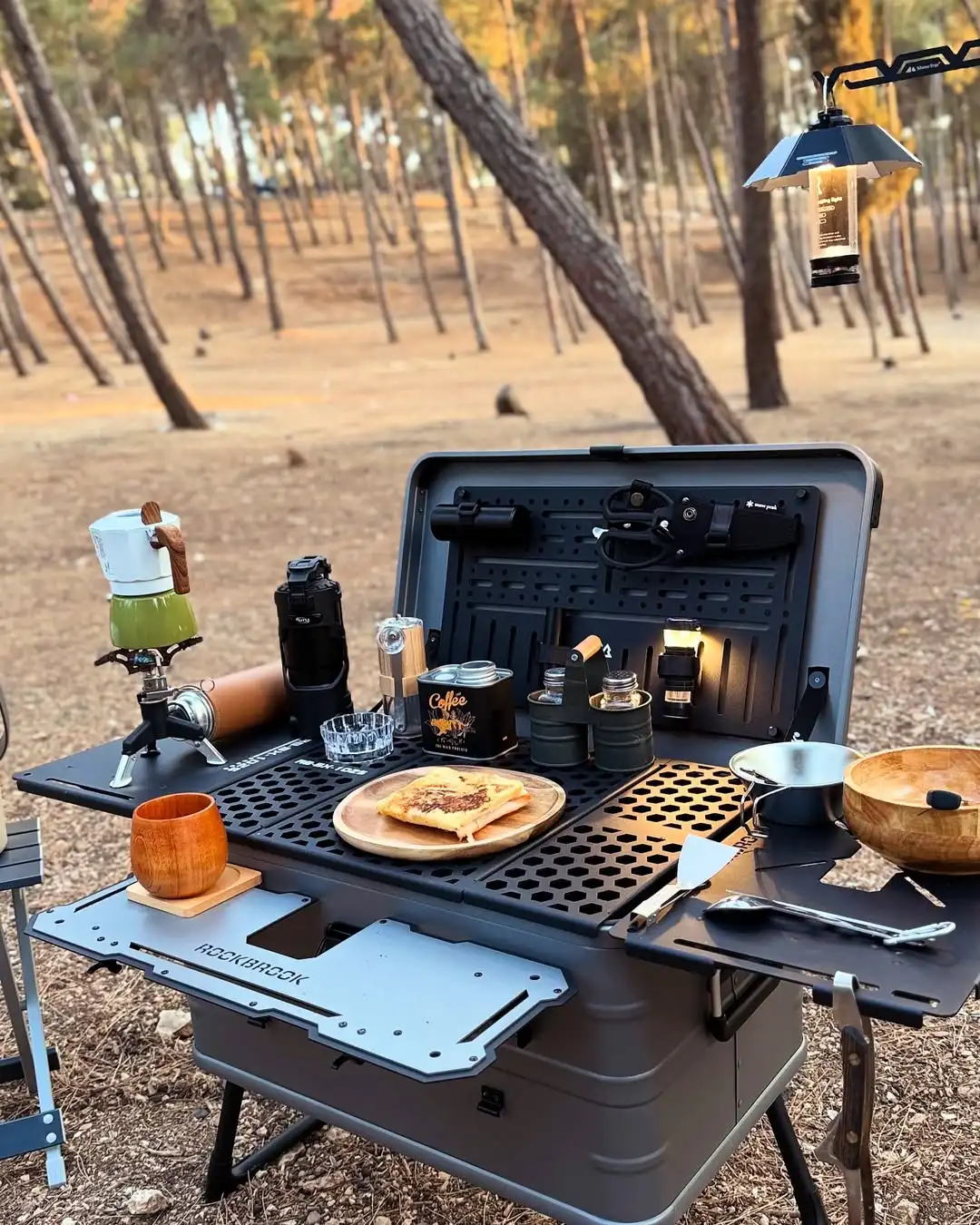 NOMAD OUTDOOR SUPPLY-Outdoor Camp Coffee Table Small Black Multifunctional Square Design Nesting Foldable Smart Luxury Aluminum